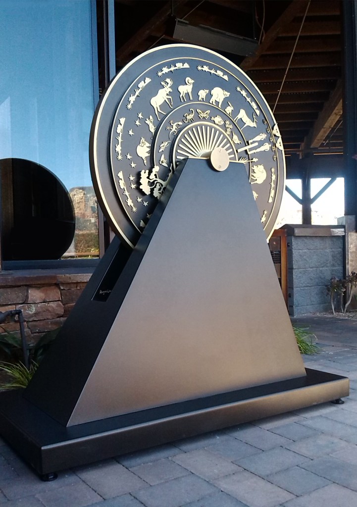 At it’s base the wheel is surveyed by a prehistoric horned toad whose presence hints of a mystery beyond the definition of time.